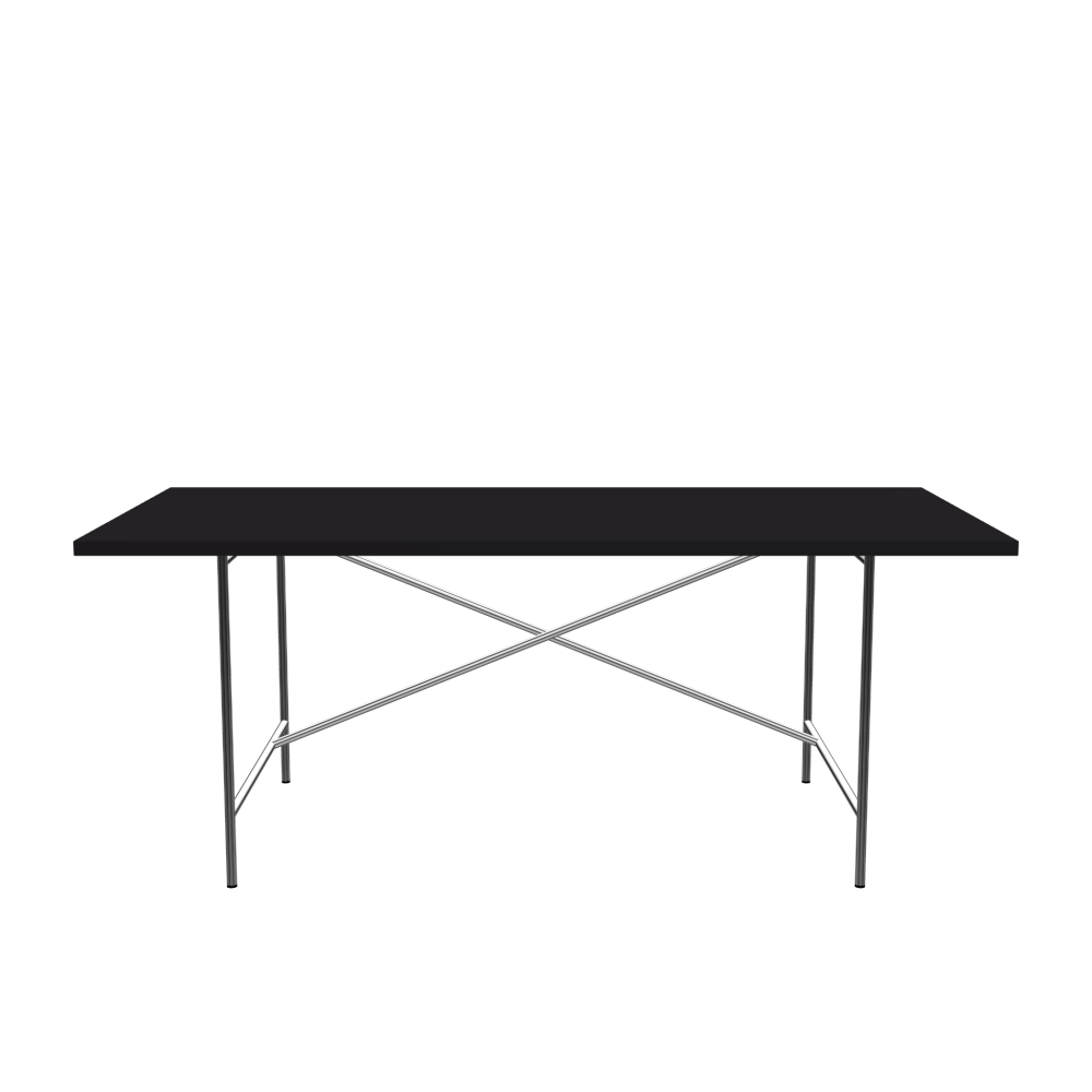 E2 Tisch - Form Eckig - Länge 190,00 cm - Tiefe 90,00 cm - Radius 0,30 cm - Stärke 3 cm - Oberseite Linoleum, 4166 Charcoal - Kern Stäbchenplatte - Kante Linoleum, 4166 Charcoal - Kantenschräge 90° / E2 Tischgestell - Material und Farbe Stahl, Verchromt - Kreuzstreben Versetzt - Länge 135 cm - Breite 78 cm - Höhe 72 cm
