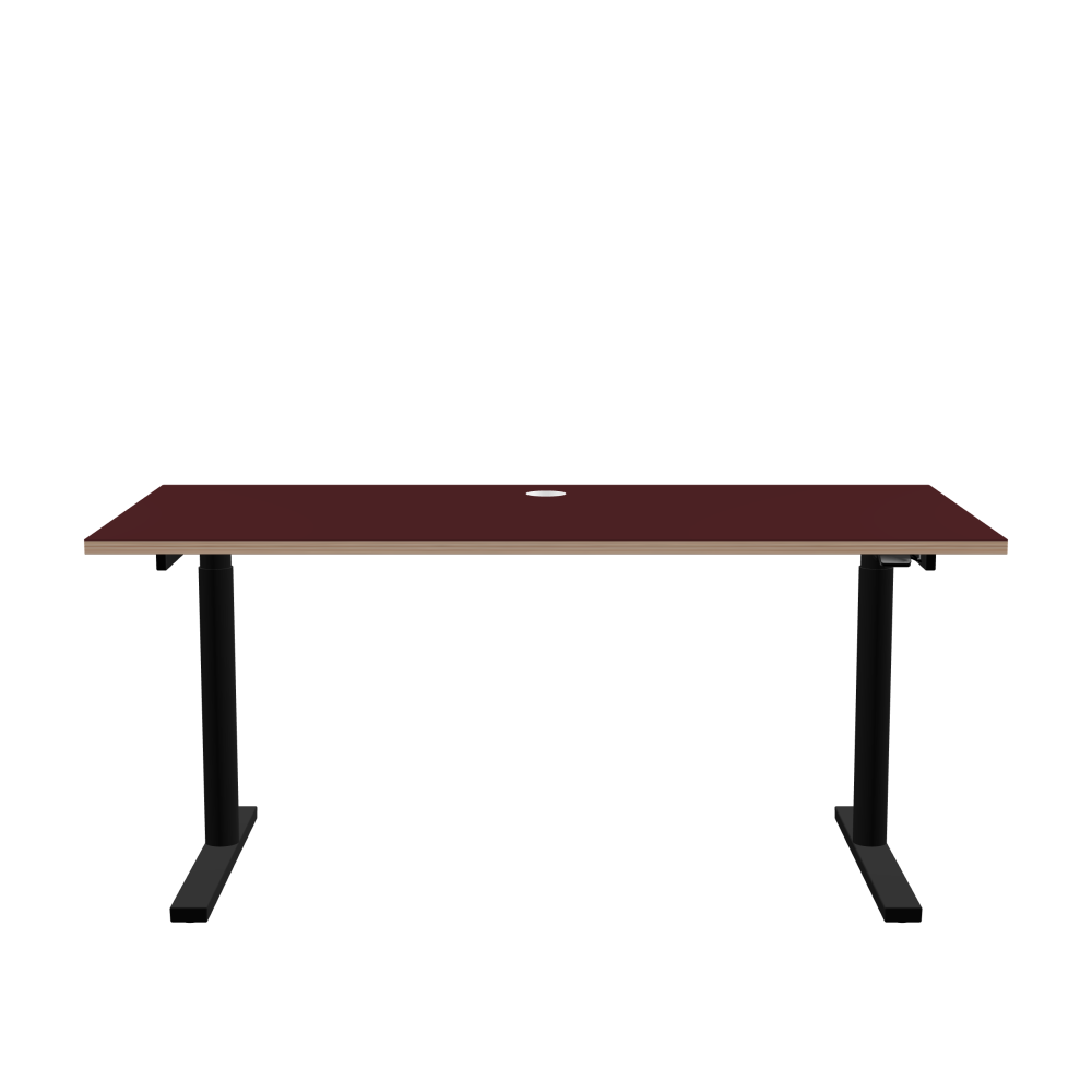 ATS Desk - Shape Square - Length 168,00 cm - Width 80,00 cm - Radius 0,30 cm - Thickness 2.6 cm - Surface Linoleum, 4154 Burgundy - Core Birch Plywood - Profile Edge 90° / ATS Desk Frame - Material and Colour Powder coated, Jet black (RAL 9005) - Size L 146 × W 71 cm - Lifting Columns Round - Control Unit Standard