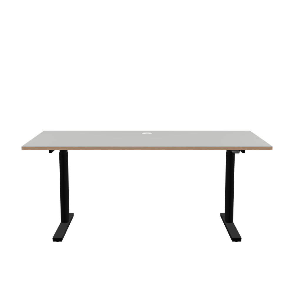 ATS Desk - Shape Square - Length 180,00 cm - Width 90,00 cm - Radius 0,30 cm - Thickness 2.6 cm - Surface Linoleum, 4175 Pebble - Core Birch Plywood - Profile Edge 90° / ATS Desk Frame - Material and Colour Powder coated, Jet black (RAL 9005) - Size L 146 × W 71 cm - Lifting Columns Round - Control Unit Standard