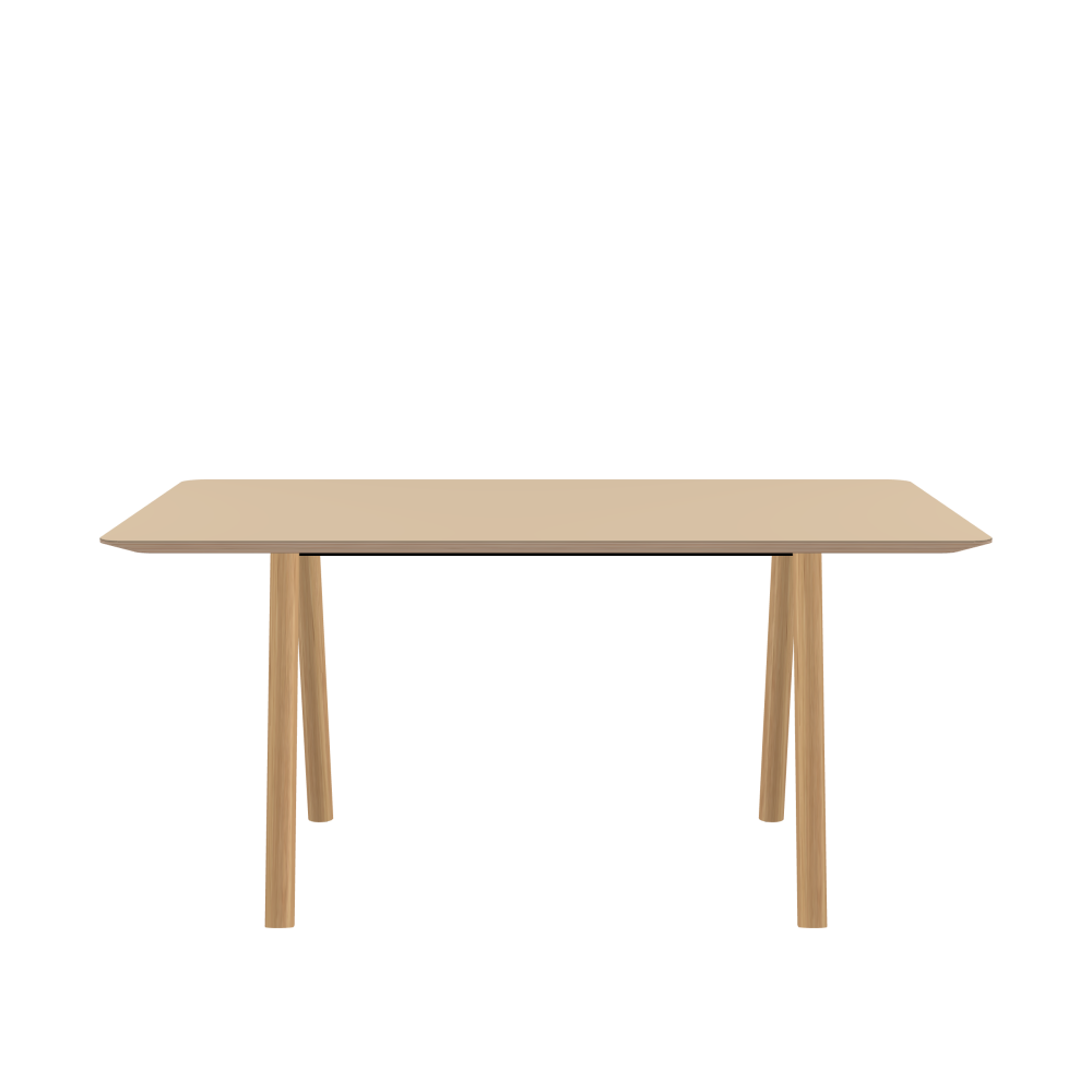 DIN PLUS Table - Shape Square - Length 160,00 cm - Width 90,00 cm - Radius 5,00 cm - Thickness 2.9 cm - Freeform 1.00000000 - Surface Linoleum, 4007 Macadamia - Core Birch Plywood - Profile Edge 25° / DIN PLUS Table Frame - Material and Colour Wood, Oak, matt oiled - Length 106 cm - Width S - Leg Profile Round - Set 2 Pieces