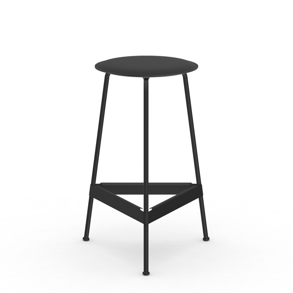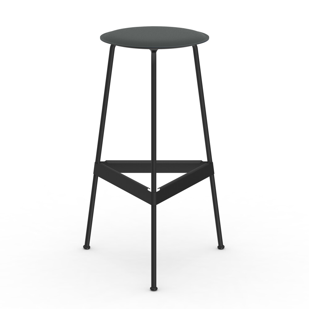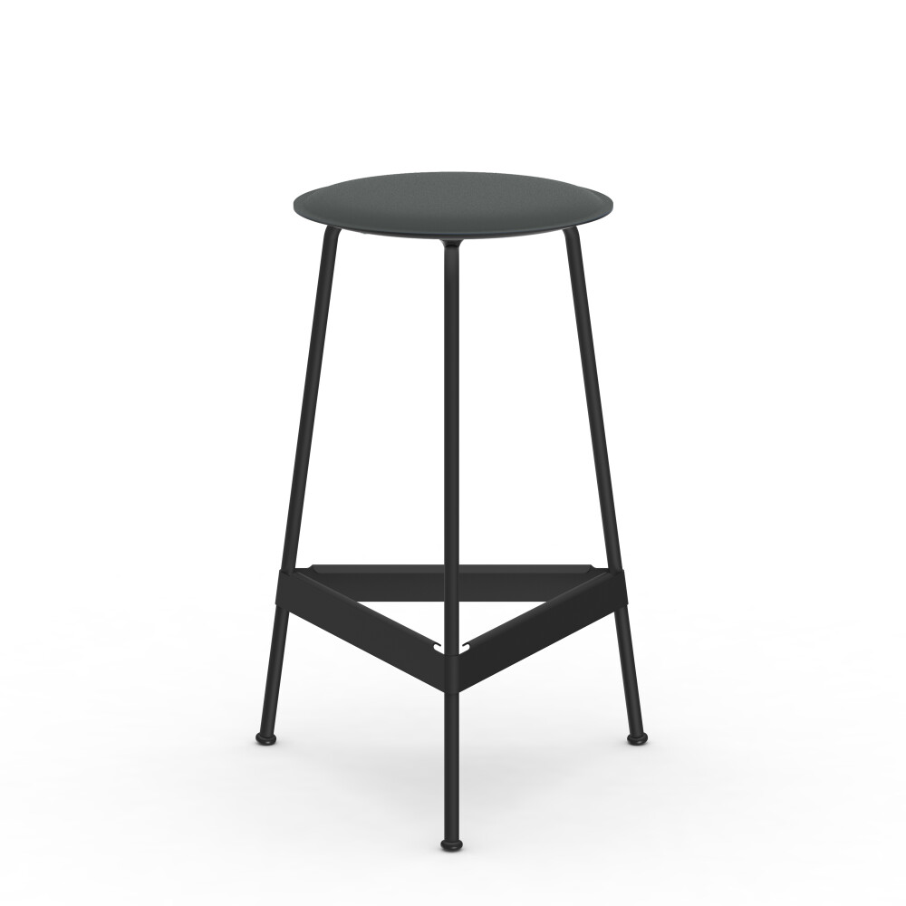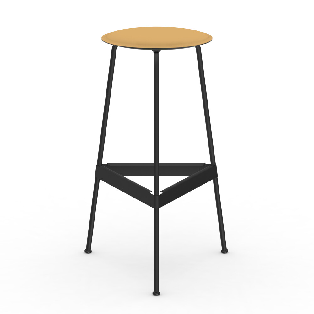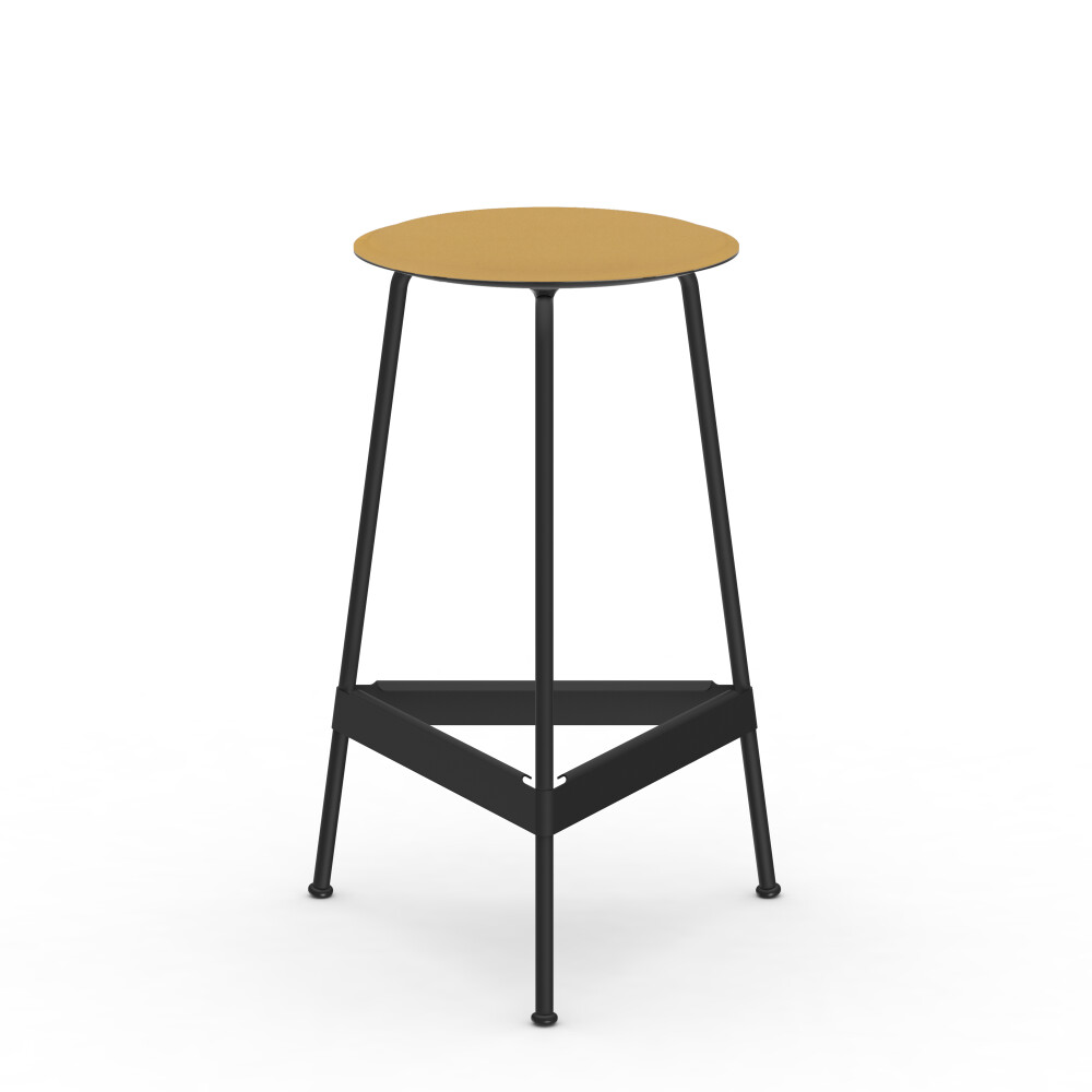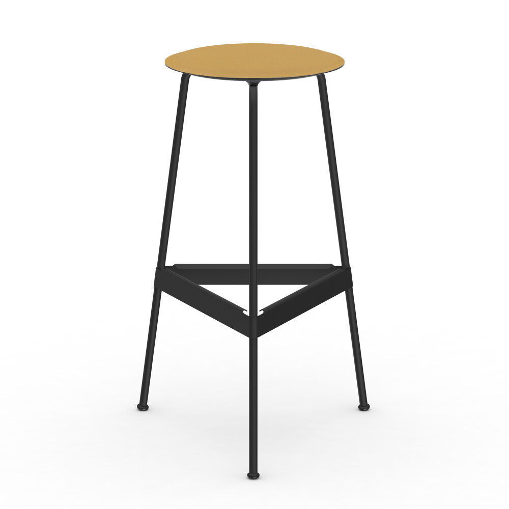 Seat in linoleum, bonded leather and felt. Metal frame in powder-coated steel. Mounted with rubber glides.