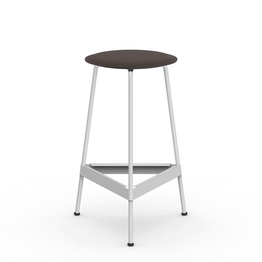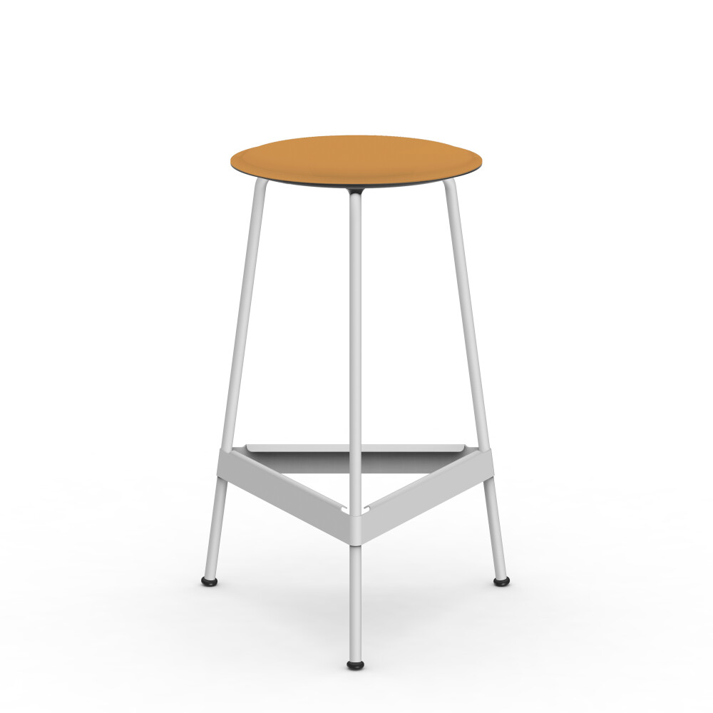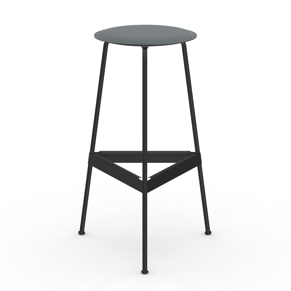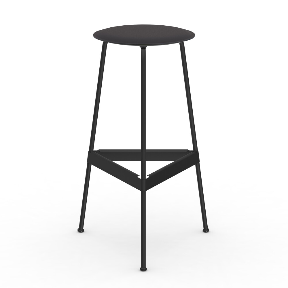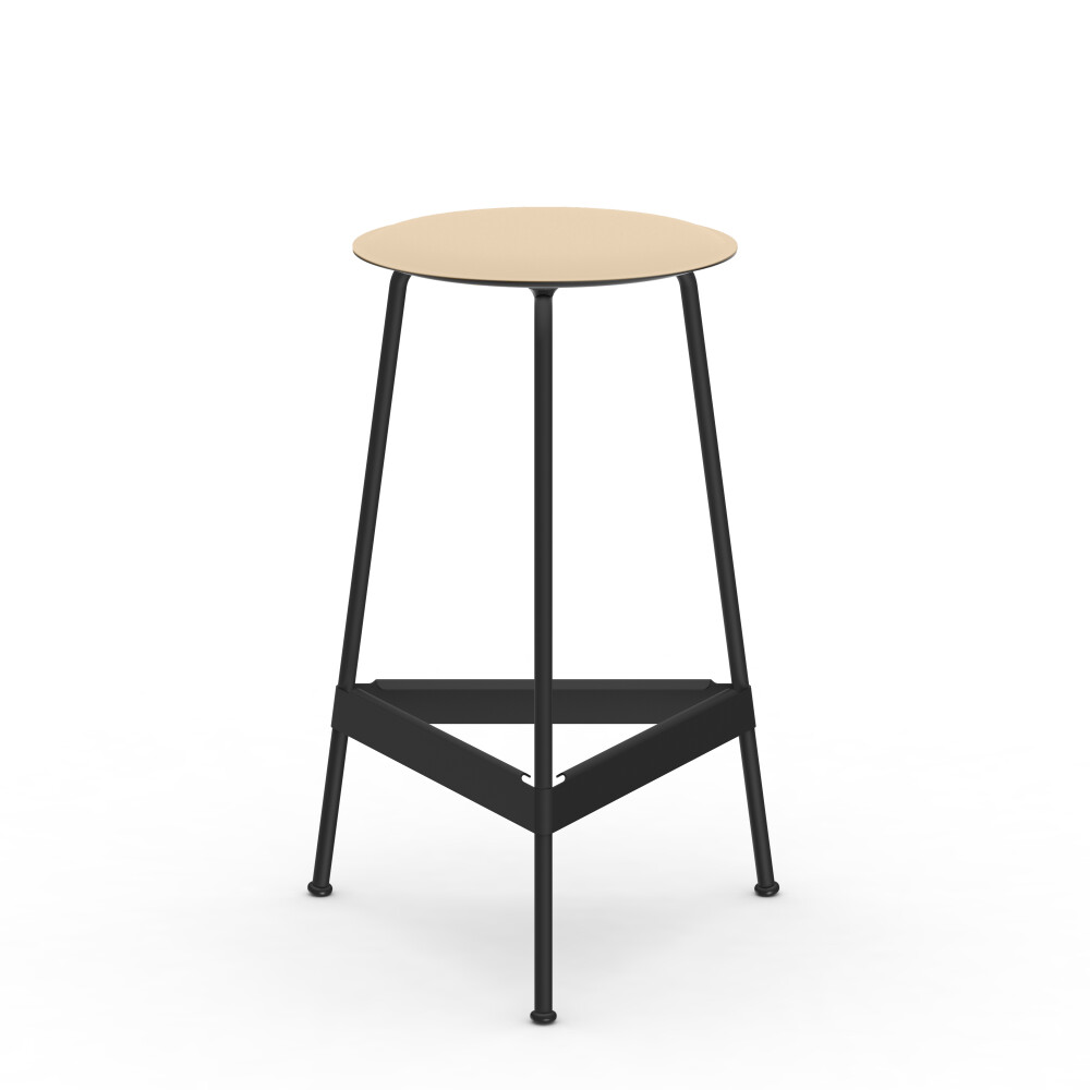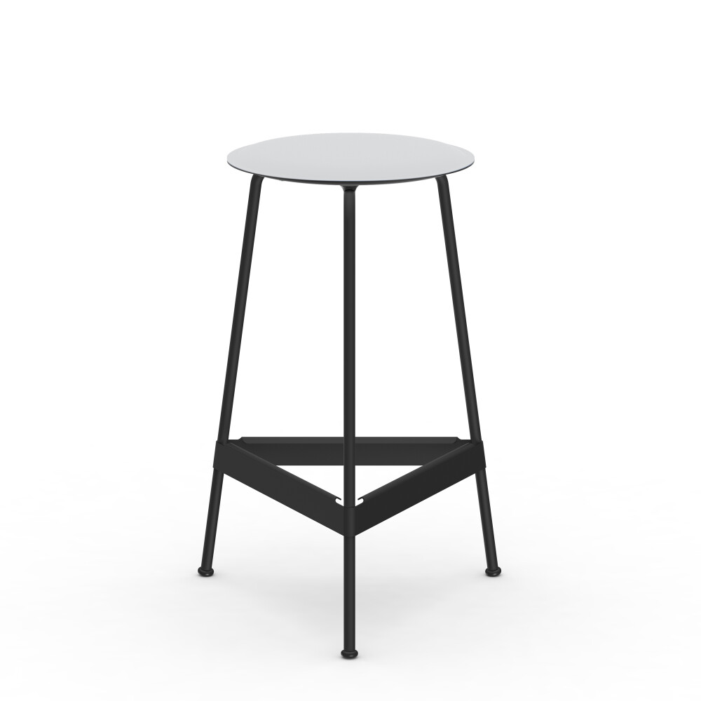 Seat in linoleum, bonded leather and felt. Metal frame in powder-coated steel. Mounted with rubber glides.