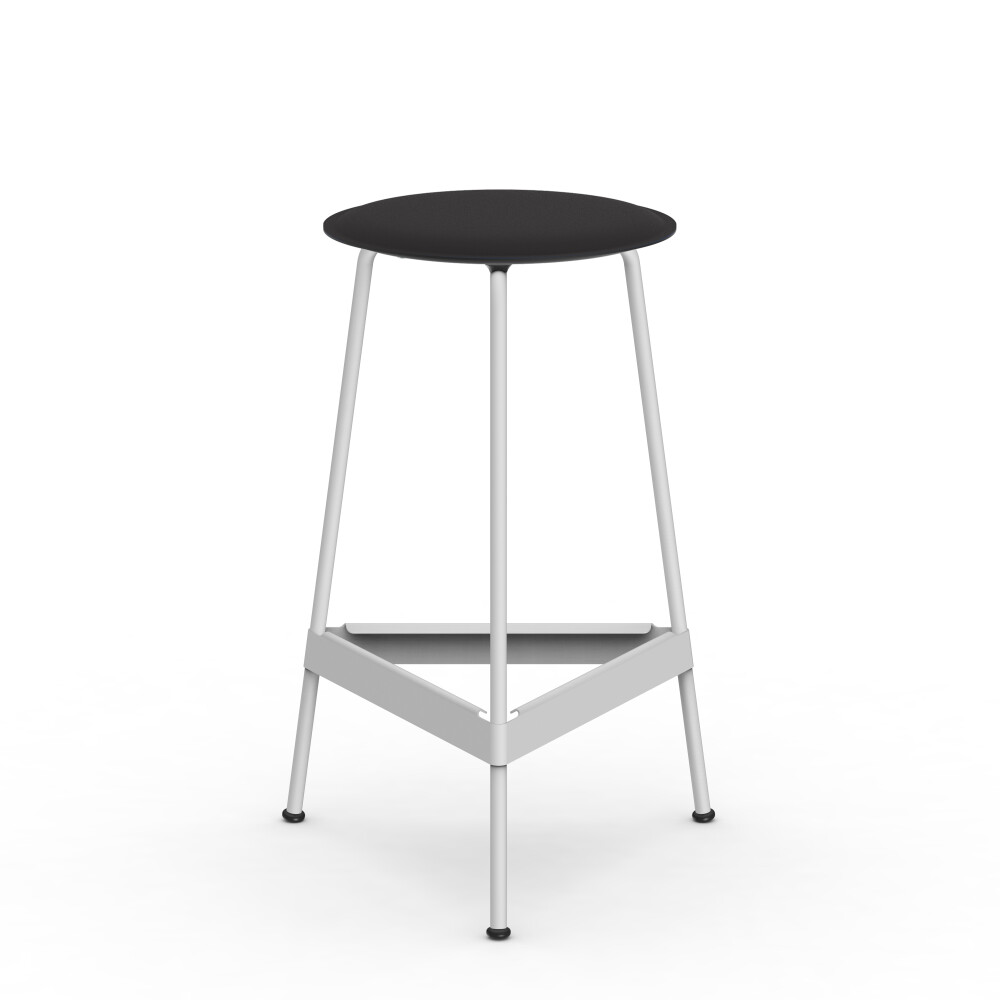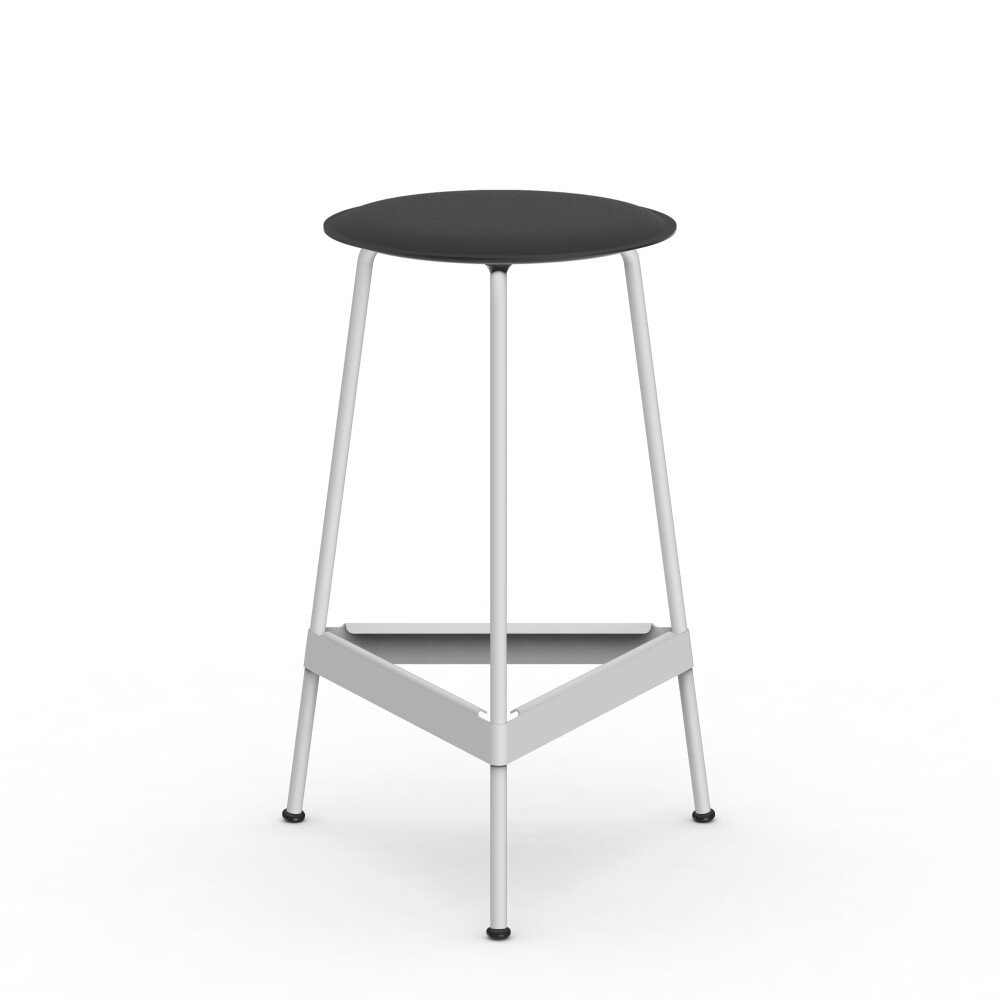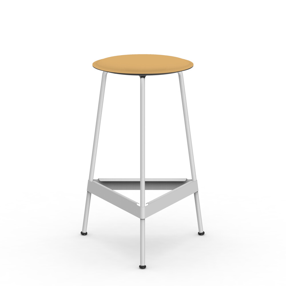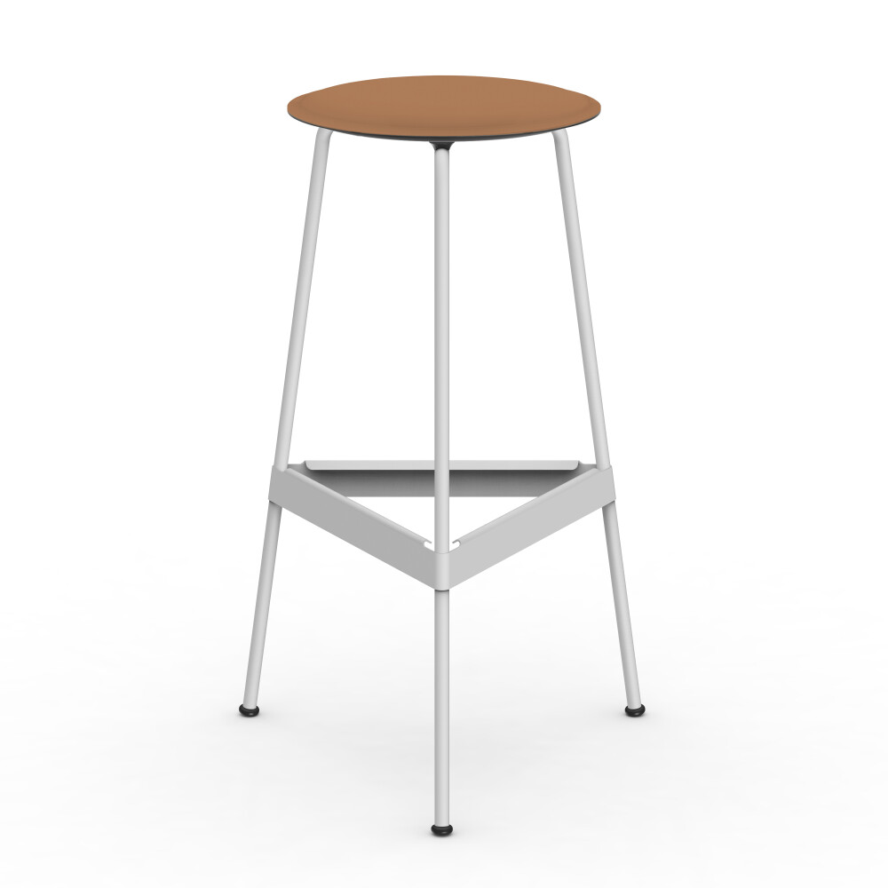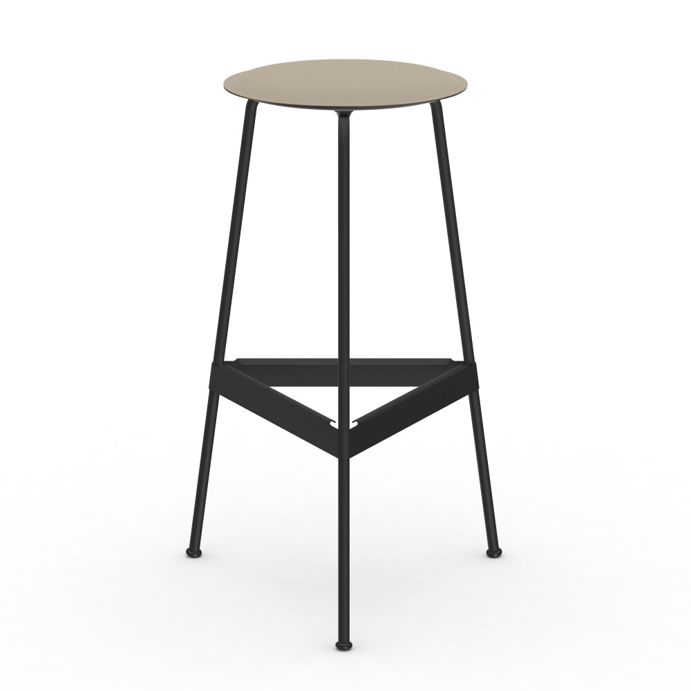 Seat in linoleum, bonded leather and felt. Metal frame in powder-coated steel. Mounted with rubber glides.