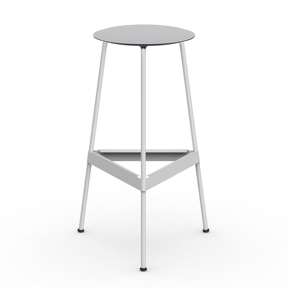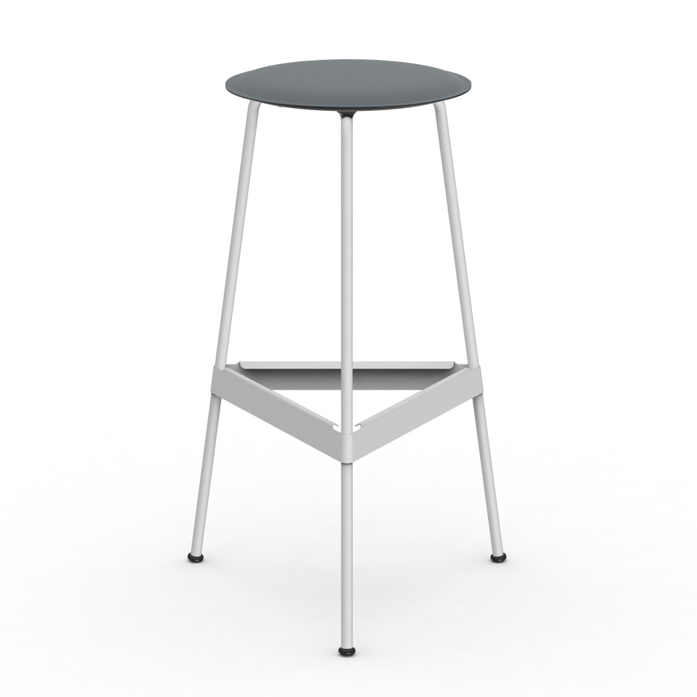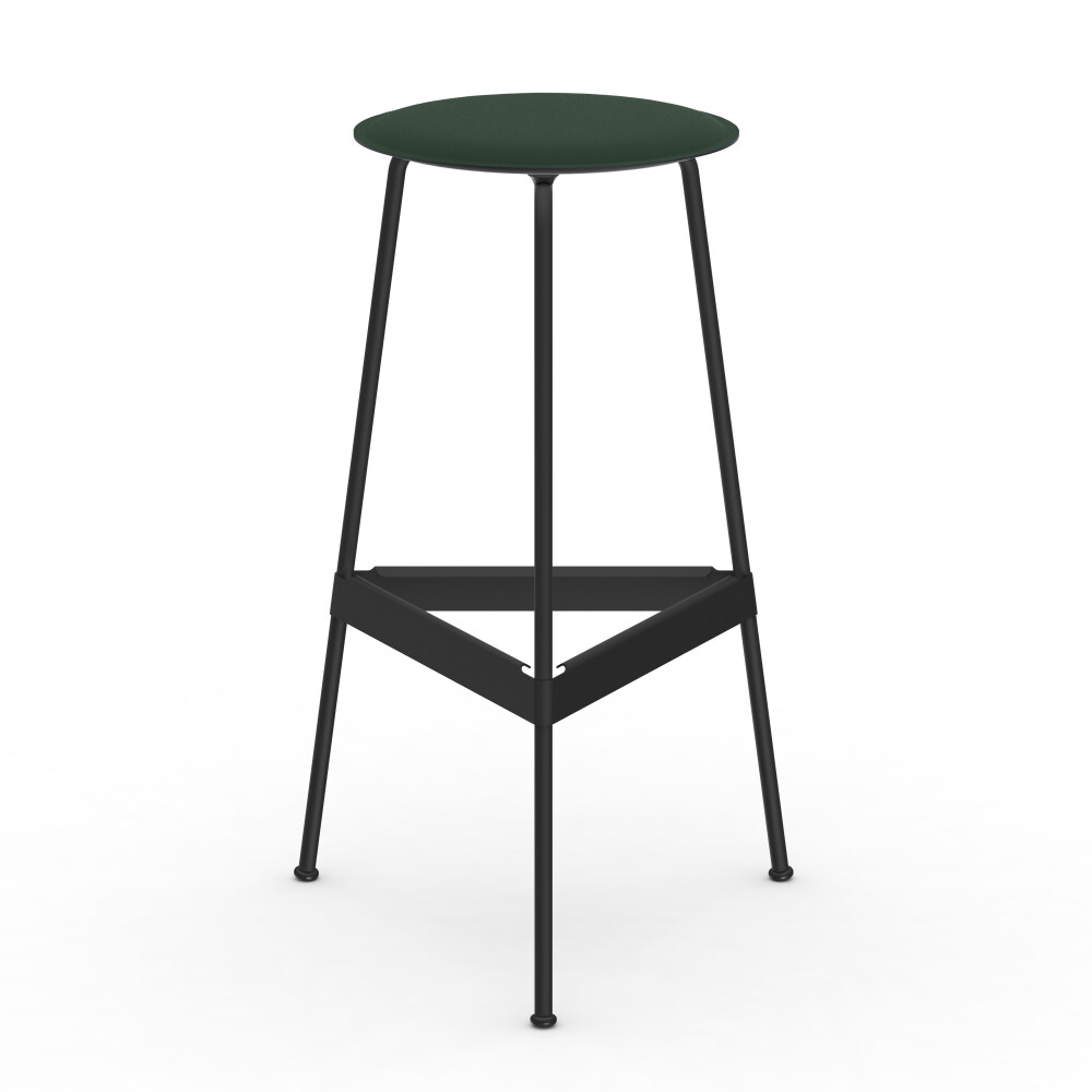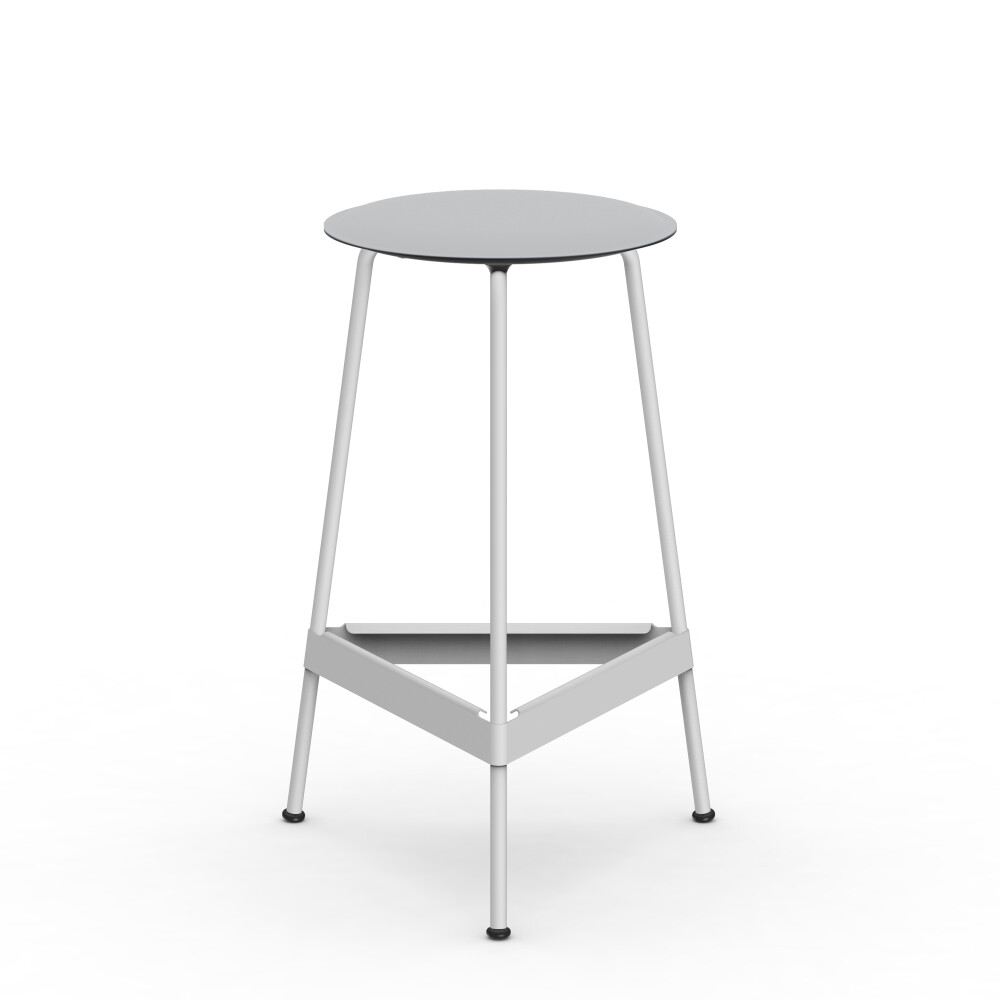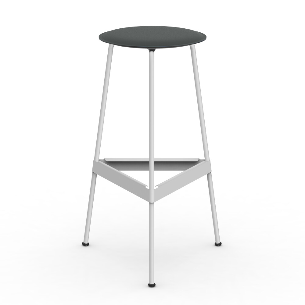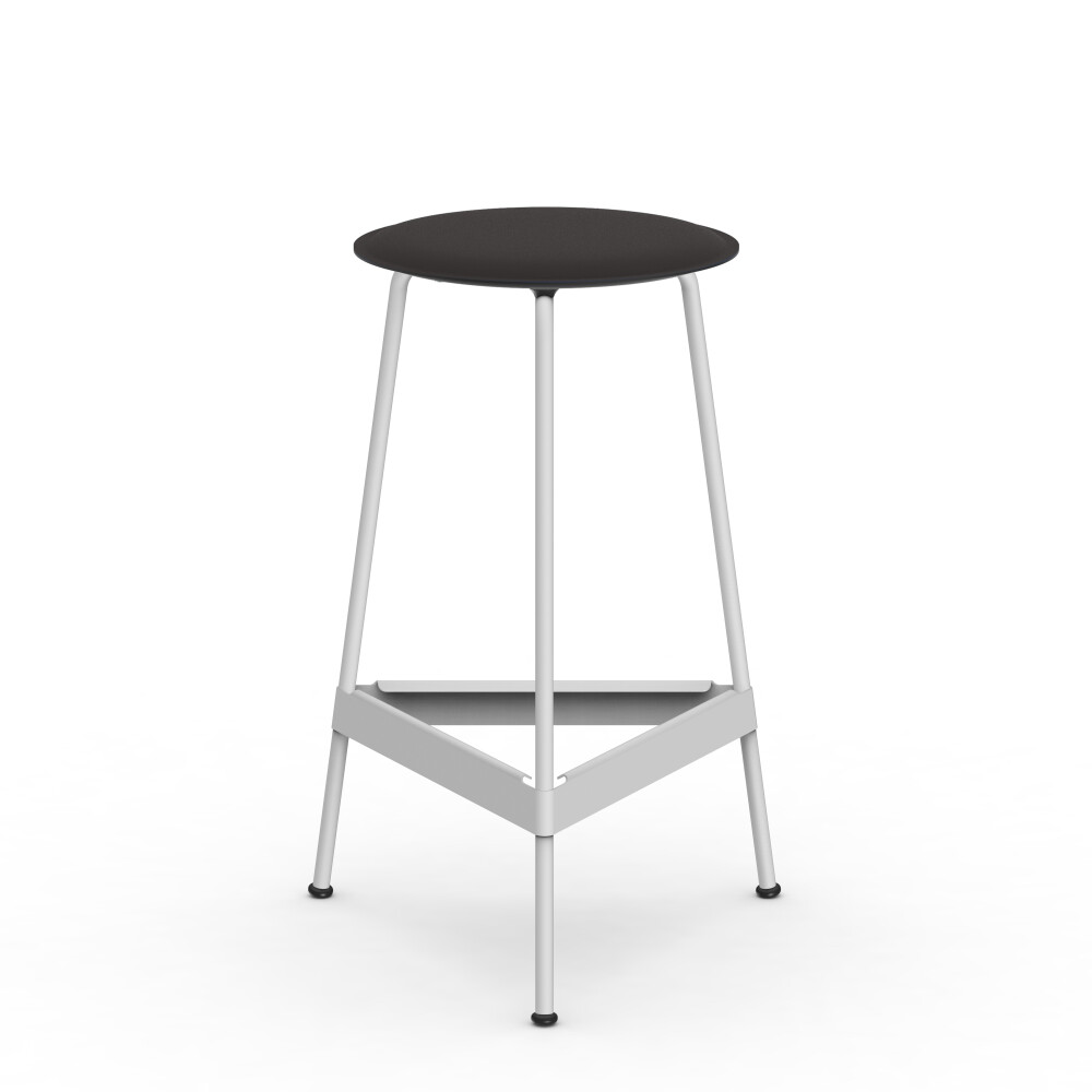 Seat in linoleum, bonded leather and felt. Metal frame in powder-coated steel. Mounted with rubber glides.