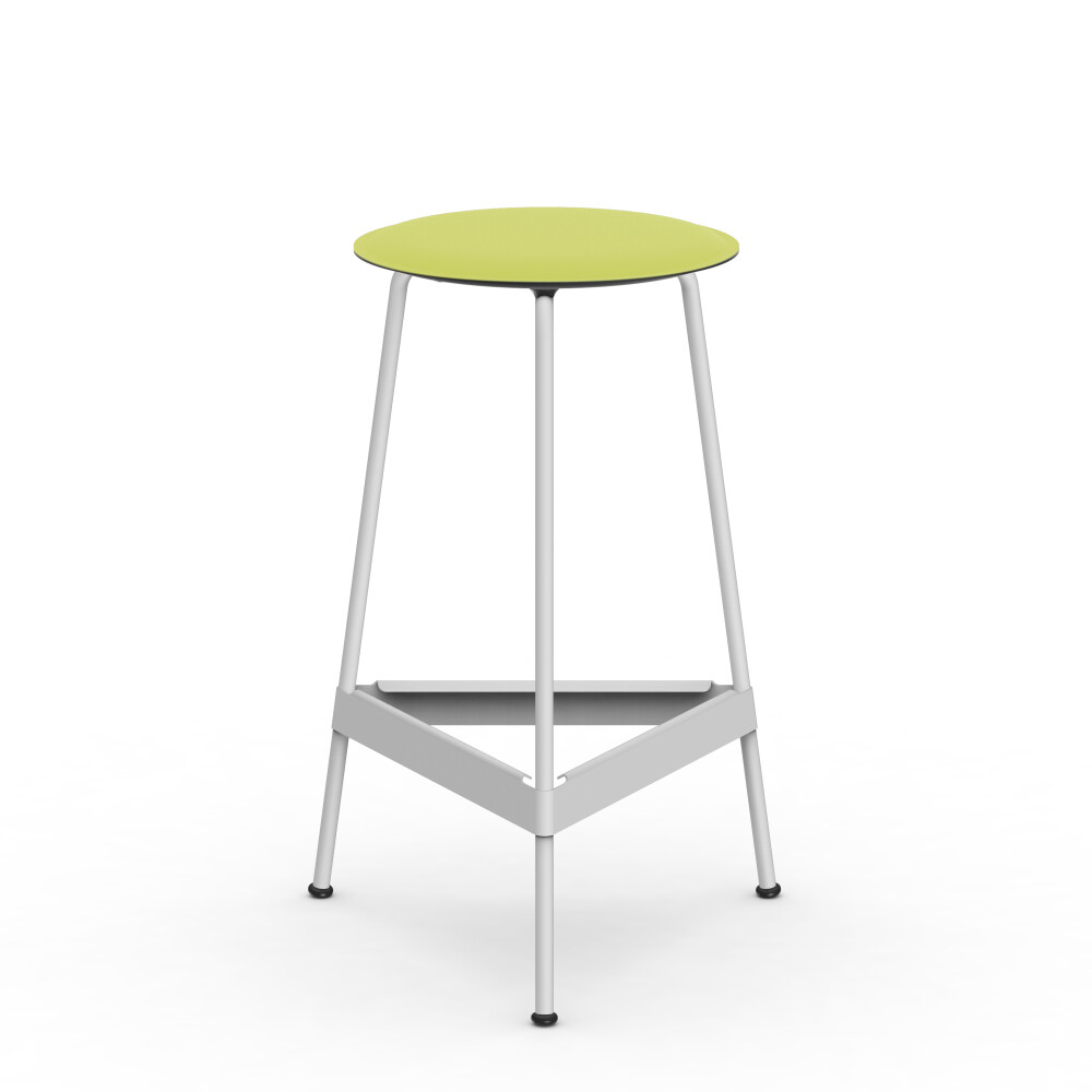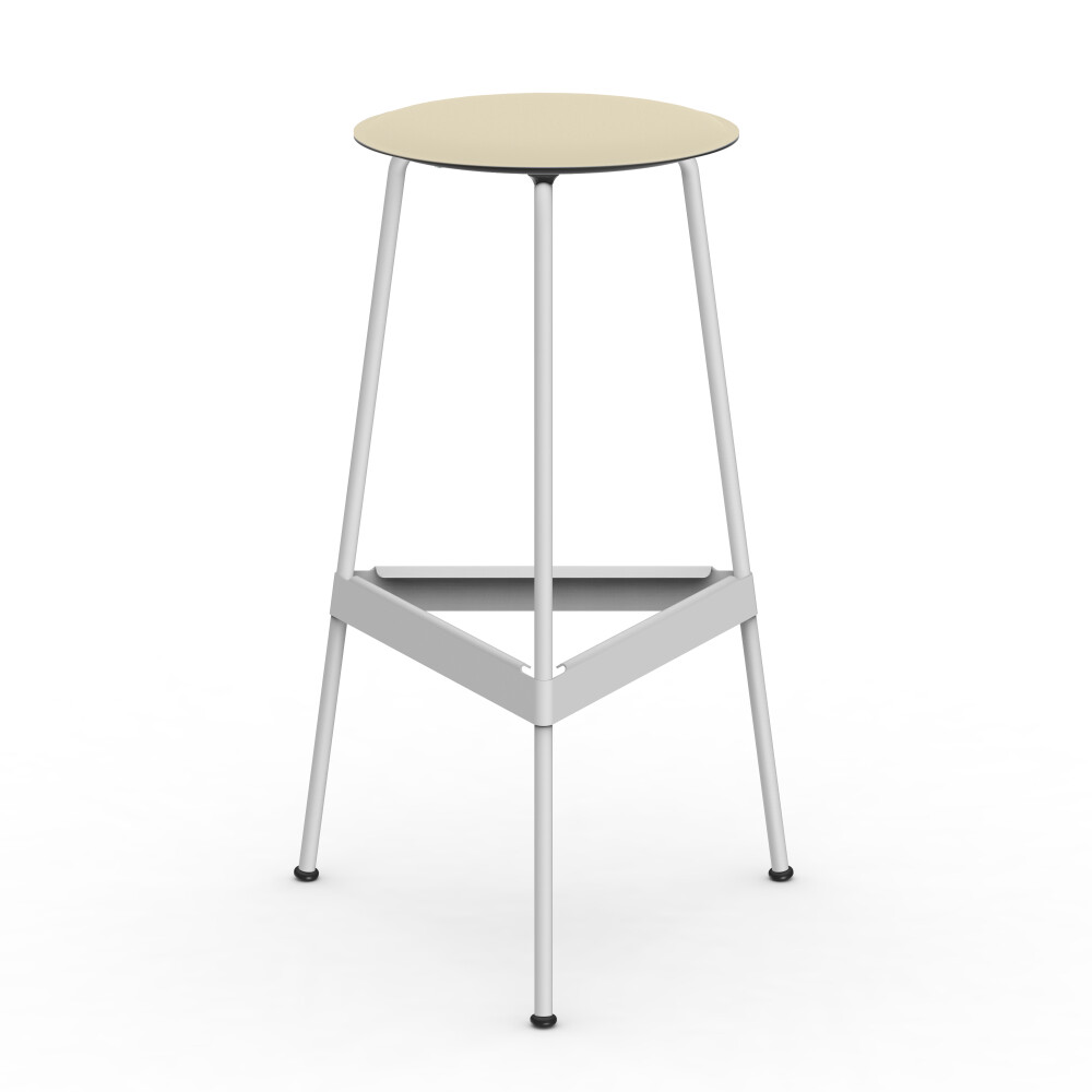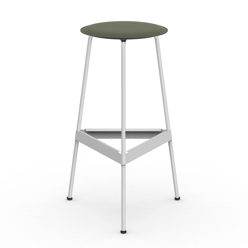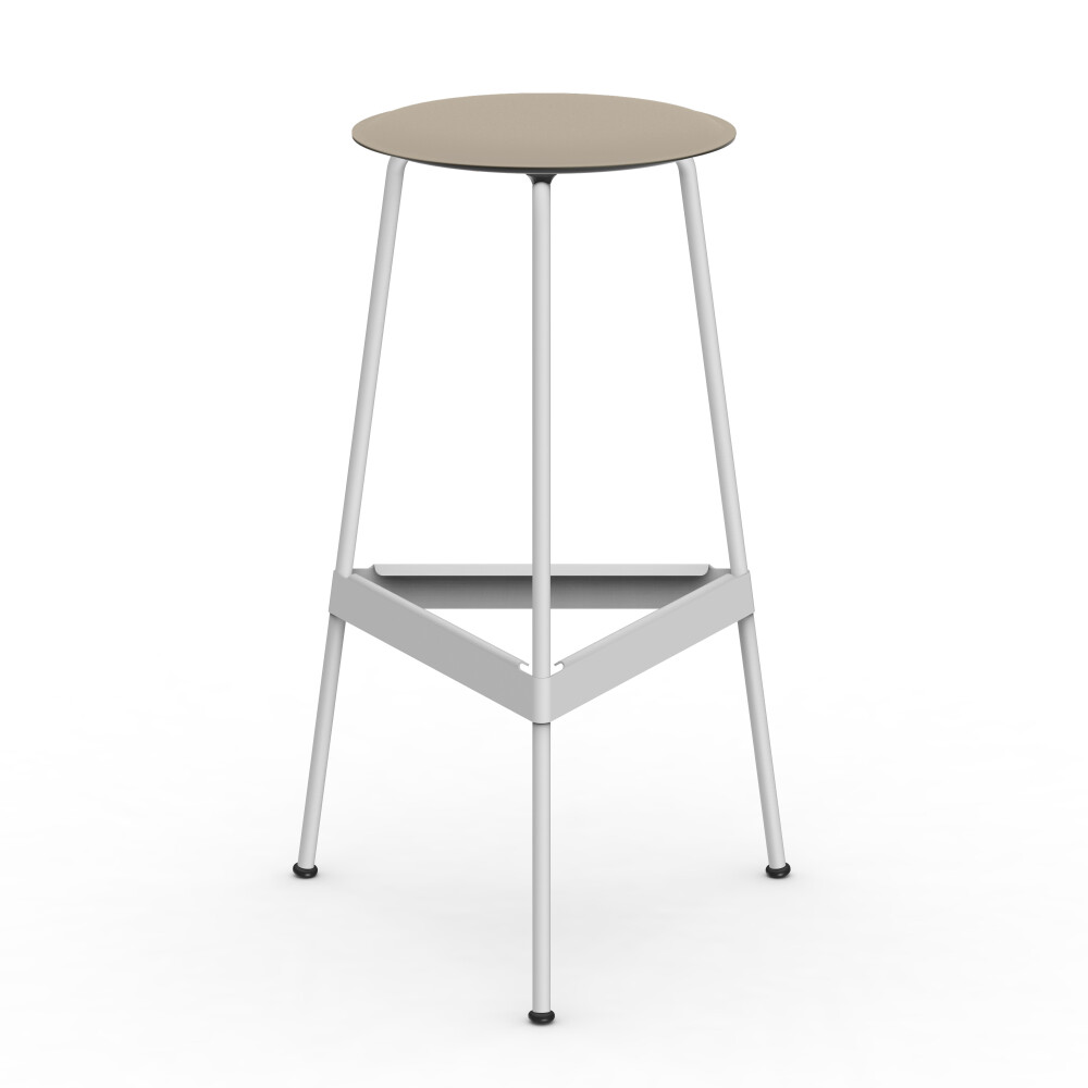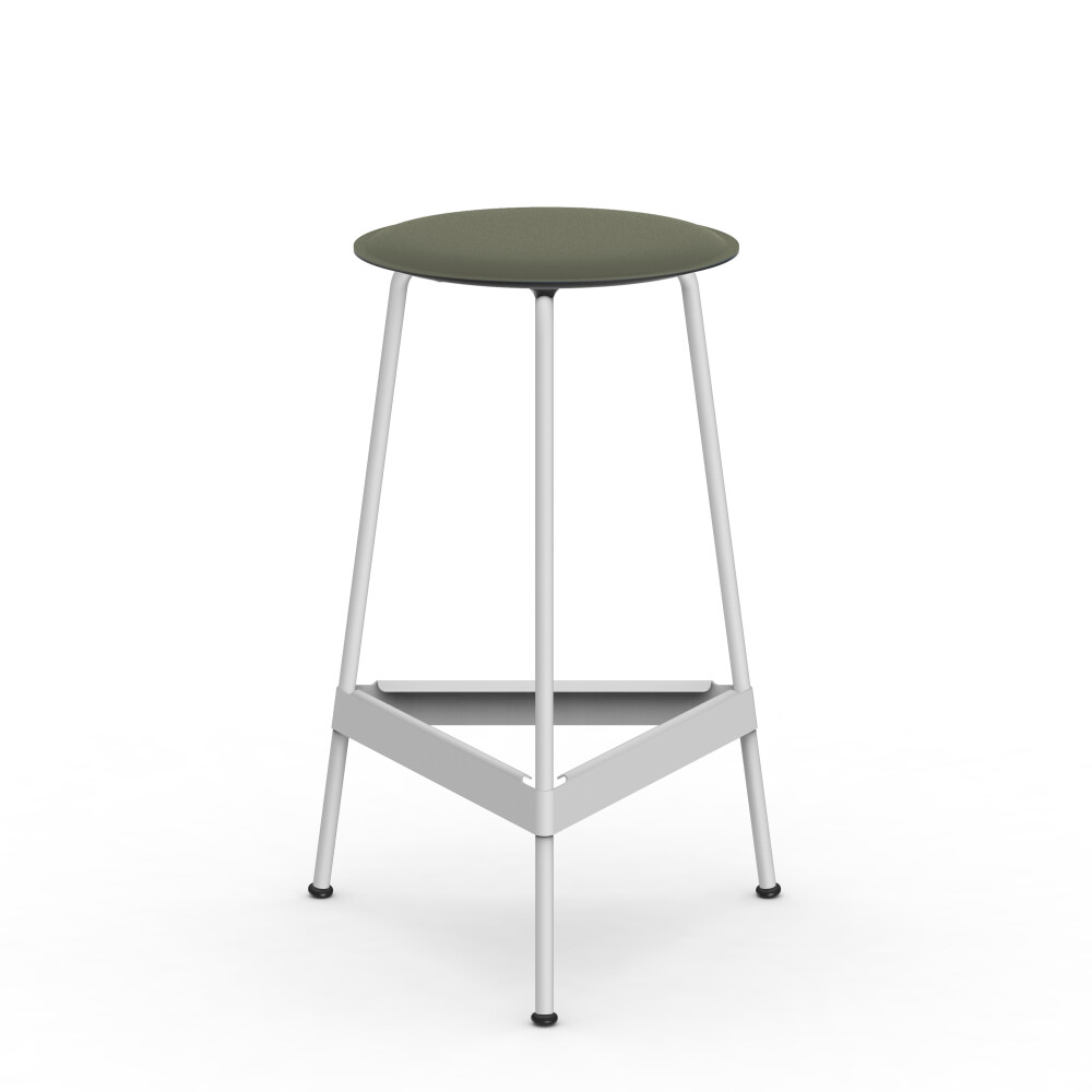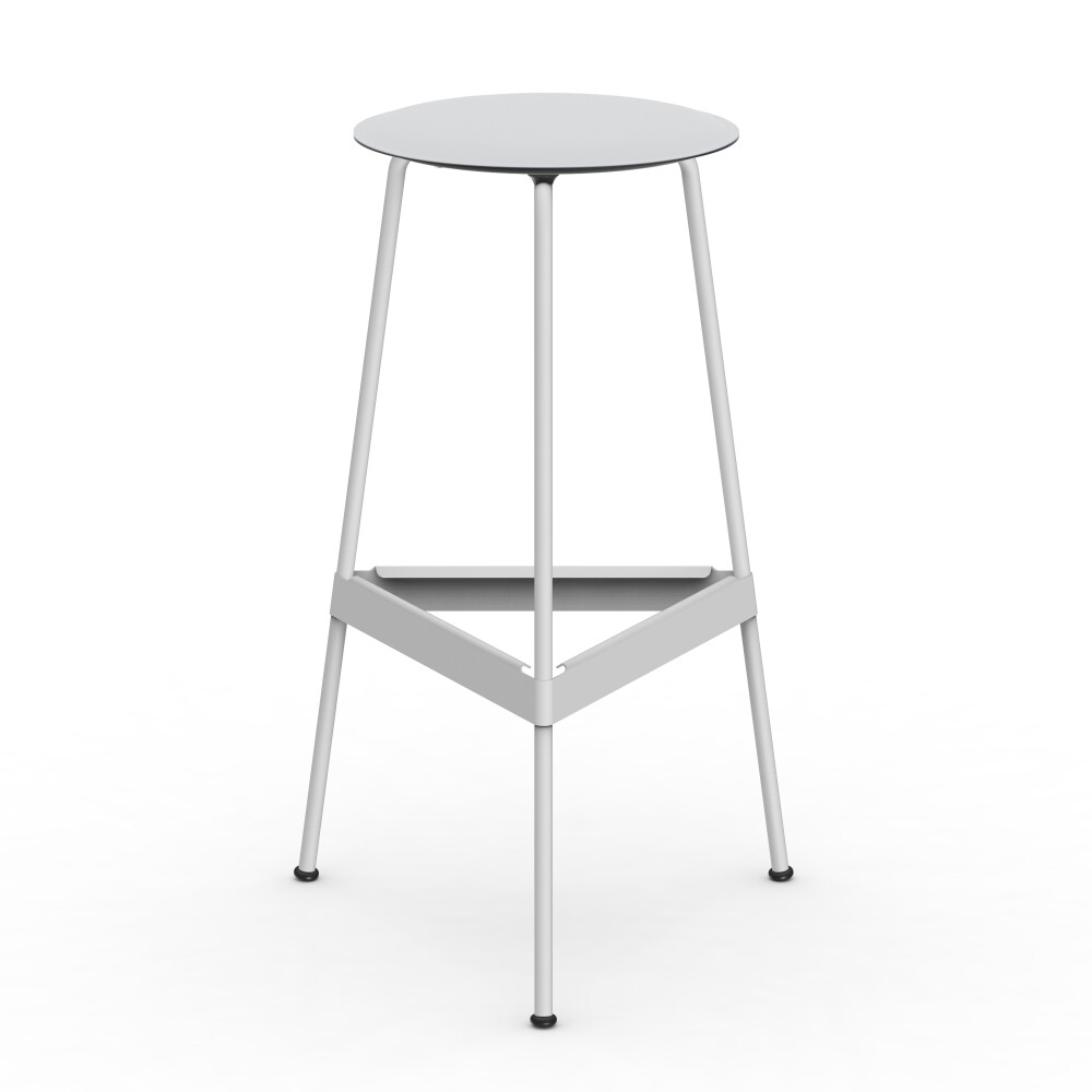 Seat in linoleum, bonded leather and felt. Metal frame in powder-coated steel. Mounted with rubber glides.