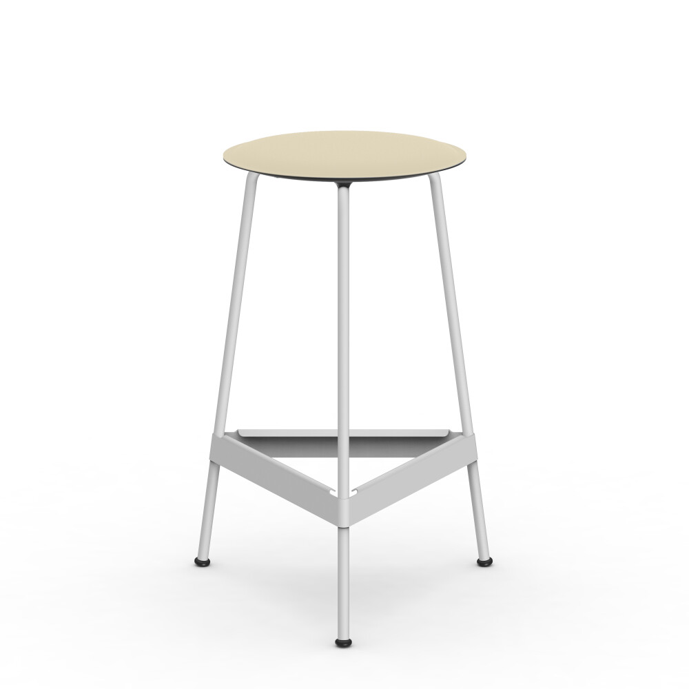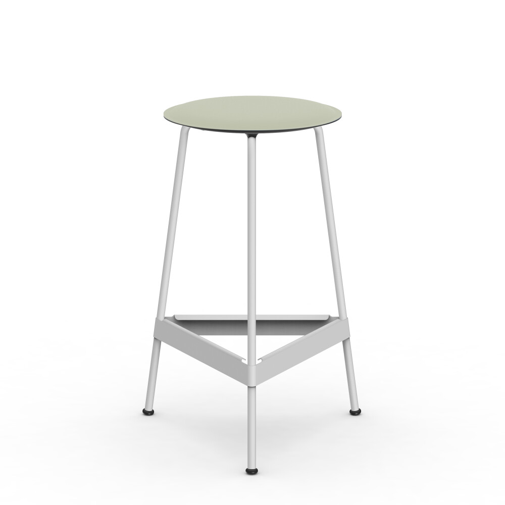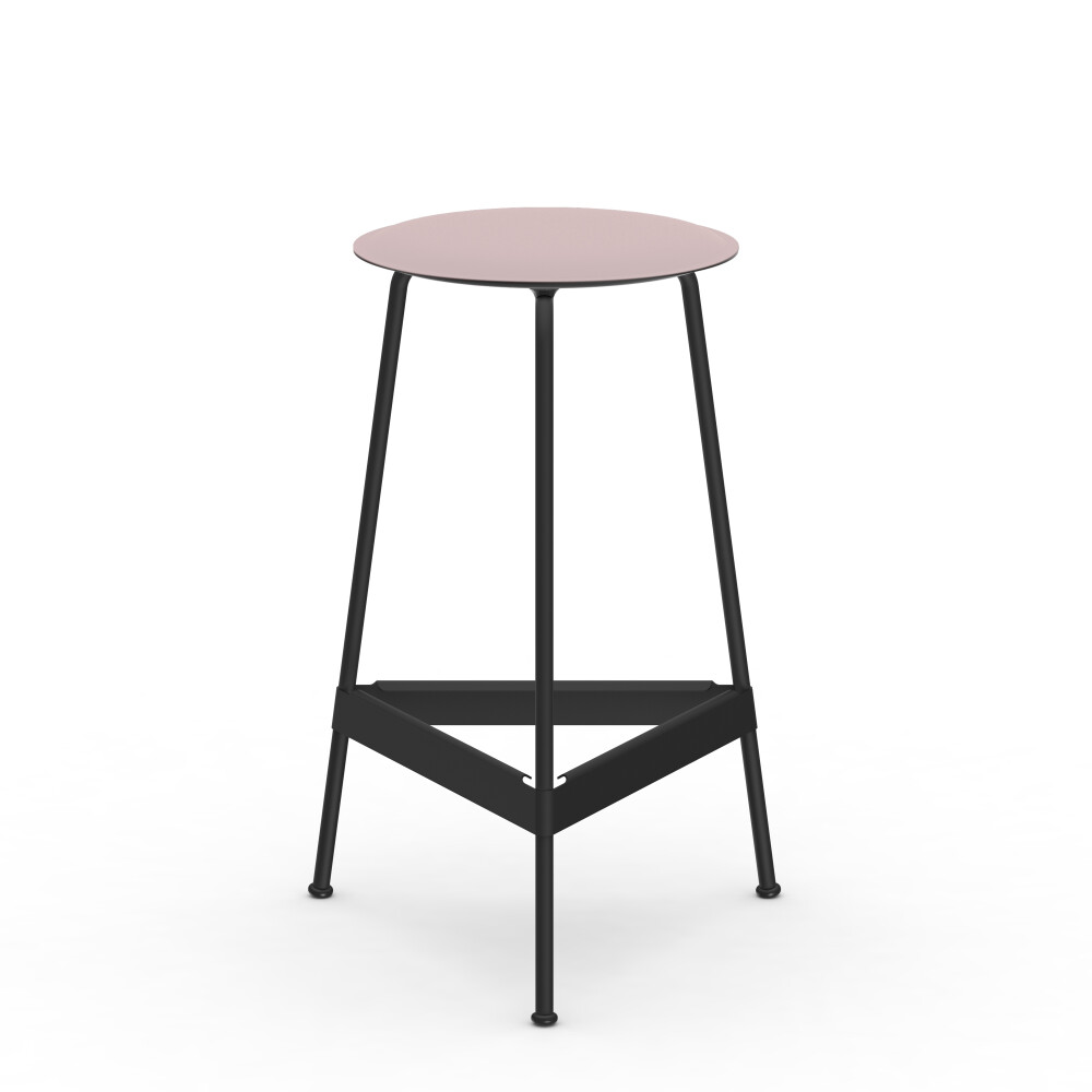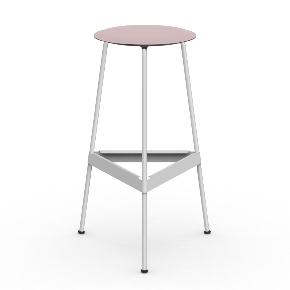 RAVIOLI stool with linoleum seat in soft lilac and white steel frame in a studio setting.
